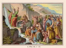 第一朗読ではのどが渇いた民がモーセに向かって不満を訴える場面が描かれている。エジプトから解放された民を待っていたのは厳しい荒れ野の自然だったから、人々は水を飲みたくても水がどこにもない。それで自分たちを連れだして導いたモーセに対して文句をぶつけたのです。困ったモーセが神に助けを求めると、神はモーゼに岩を打たせ、その岩から水が湧き出て民は渇きをいやすことができることになった。その奇跡を通して民は初めて主がなさったことに気が付いた。主を試して、主がちゃんと自分たちの間におられたことを理解したのです。