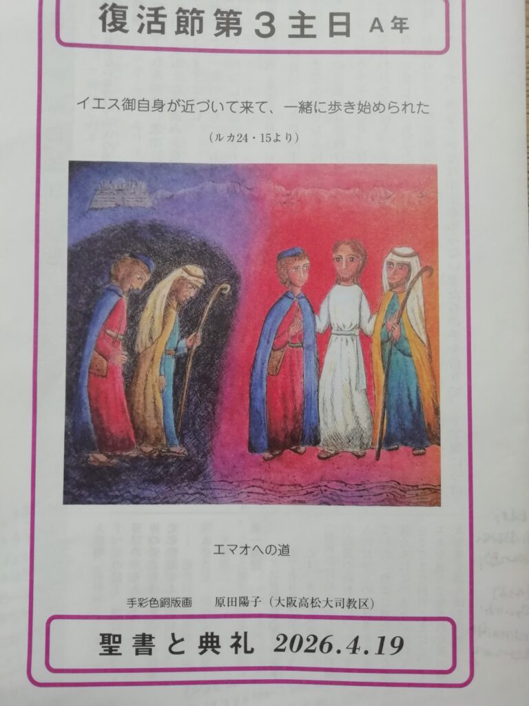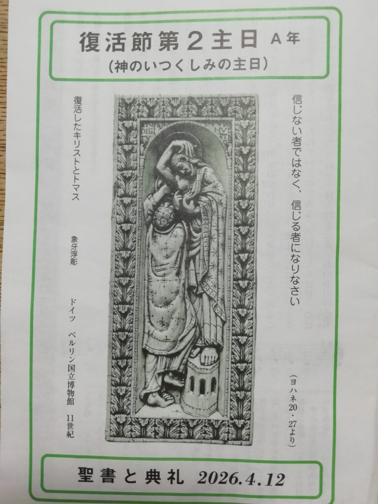 今日もご復活をお祝いしました。ミサ開始前に恒例の歌の練習があったおかげで信徒の皆さんの歌声もよく響き、またいつもの侍者に加えて3人の練習生も加わり、総勢5人の侍者と神学生も奉仕しておられ、盛大なごミサに感じました。侍者たちへハルノコ神父様からねぎらいと感謝のことばがかけられ、信徒のみなさんにも温かい見守りと励ましを求められました。